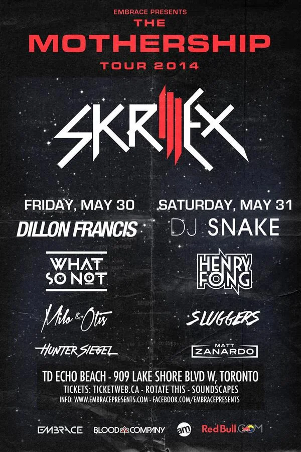 The Skrillex Mothership Tour 2014 2-date stop in Toronto have finalized its lineups