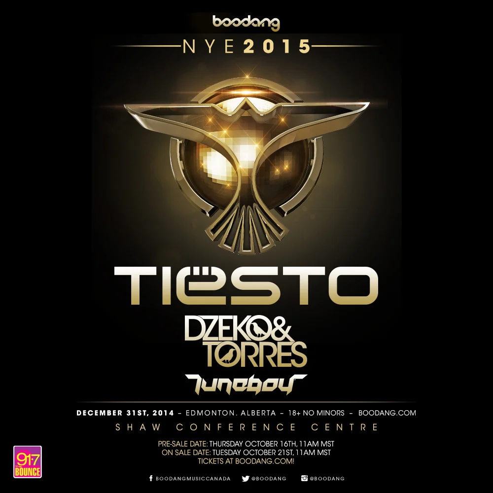 Wednesday, December 31st - Boodang NYE w/ Tiesto, Dzeko & Torres, Tuneboy @ Shaw CC