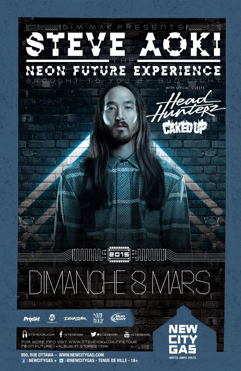Sunday, March 8th - Steve Aoki w/ Headhunterz, Caked Up @ New City Gas