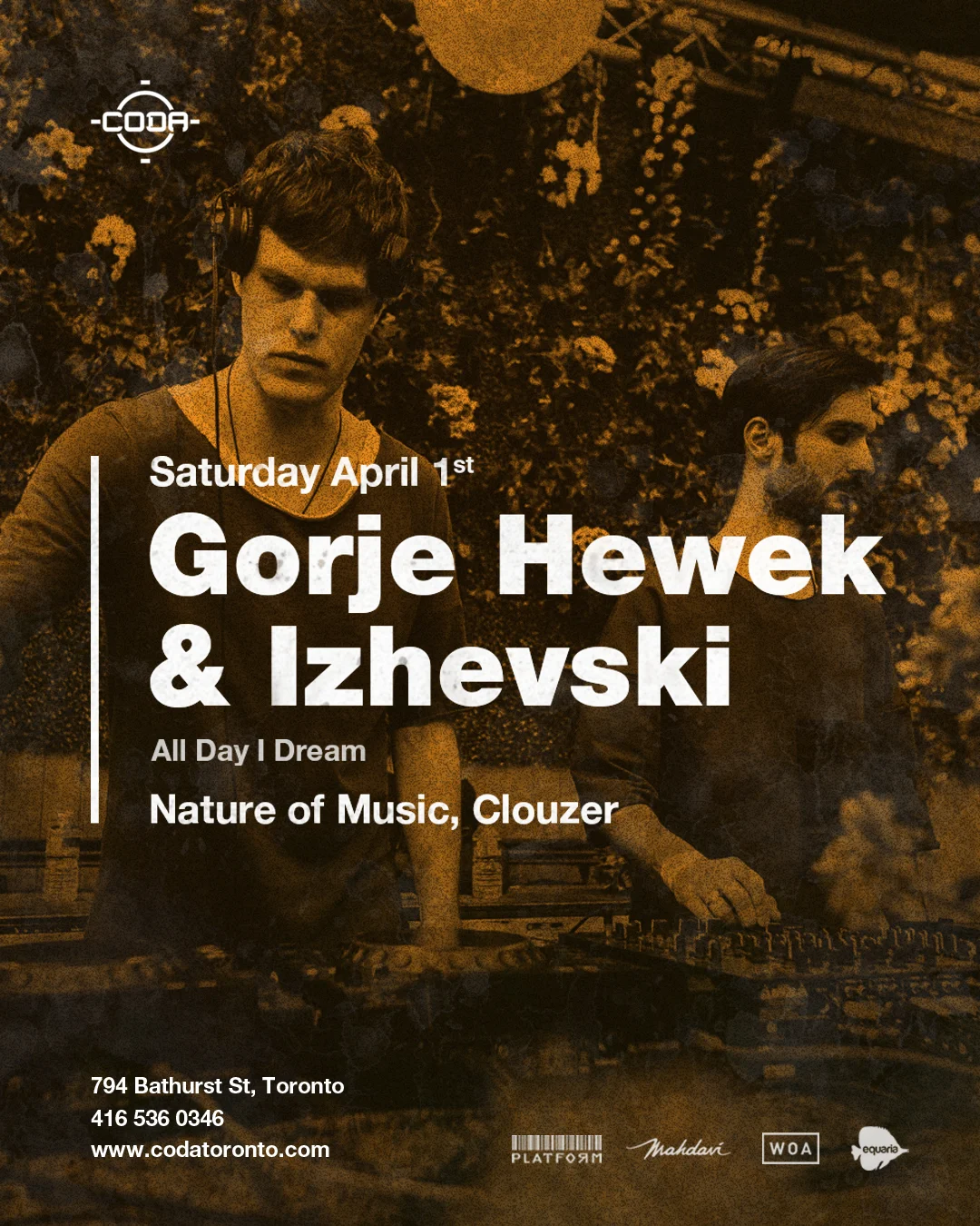Saturday, April 1st - Gorje Hewek & Izhevski (All Day I Dream) @ CODA