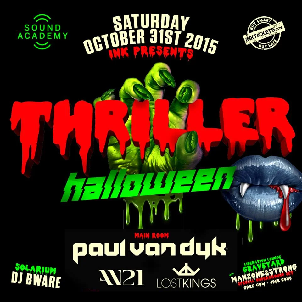 Saturday, October 31st - Thriller 2015 w/ Paul Van Dyk + More @ Sound Academy